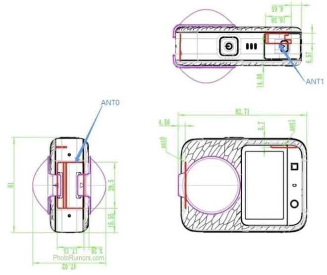 目前主流的全景相机形态多为立杆式,在剧烈运动时,可能会出现不稳定的情况。根据 FCC 图片,大疆的产品更扁平,更容易收纳、携带和固定。(来源:36 氪)