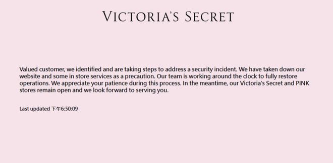 美国最大连锁女性内衣零售店「维多利亚的秘密」(Victorias Secret)疑遭遇黑客网攻勒索,官网无预警关闭。线上购物服务全面中断,部分店内功能也同步暂停。公司发出声明,证实正在处理一起「安全事件」,并已启动应变措施,但并未透露遭攻击细节。受此事件影响,公司股价重挫 7%,盘中一度暴跌达 10%。