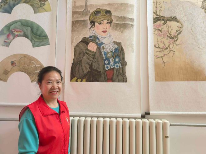 韩国林常常帮展示馆打扫卫生,擅长美术的她捐了一幅《采油女工》画作,画中女工眼神坚定面带笑容,她反复尝试不同色彩搭配,最终选用灰底色,再以蓝色围巾点亮画面,突出她们在恶劣环境下的坚韧。“画的是我,也是大家,这就是我们当年的样子,就是我们的青春。”她说,在油田干了几十年,有些场景闭着眼都能画出来。